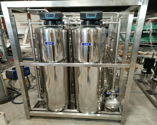 原水箱——增壓泵——不銹鋼仿玻璃鋼過濾器——軟化樹脂過濾器——精密過濾器——高壓泵——反滲透一級過濾系統——水箱——高壓泵——二級反滲透——304材質不銹鋼無菌水箱——增壓泵——保安過濾器——EDI模塊——超純水水箱